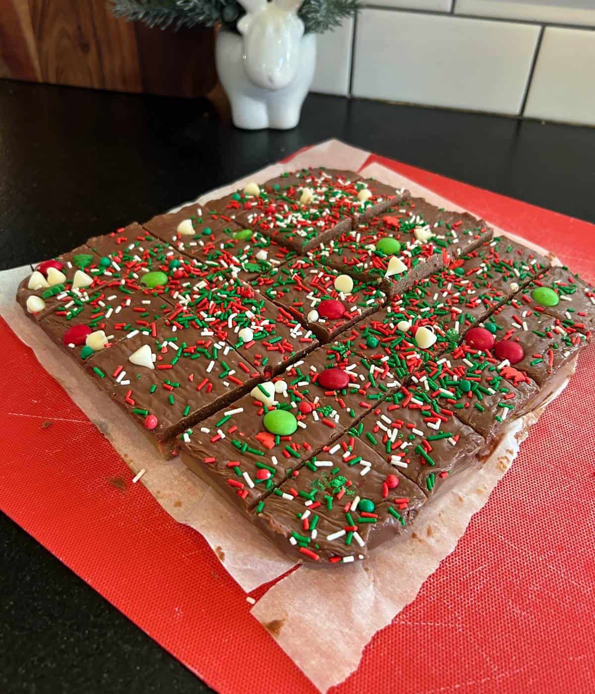 - The sprinkles can be left off, but I do like that they cover up any imperfections. Fudge sets quick and sometimes it can look a little funky on top.